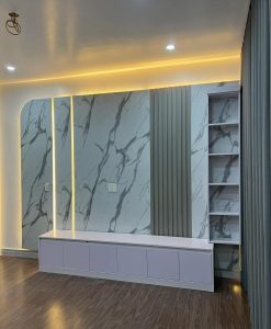 TV032_Kệ tivi vách ngăn trang trí gỗ MDF lõi xanh chống ẩm thi công tại Ninh Bình.