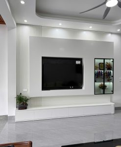 TV0010- Kệ Ti Vi + Vách Ngăn Trang Trí Đẹp Nhất Ninh Bình Bằng Gỗ MDF lõi xanh chống ẩm