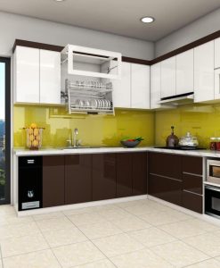 - Tủ bếp nhựa ACRYLIC bề mặt bóng gương có màu sắc đa dạng trẻ trung mang phong cách hiện đại.