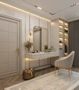 Mẫu bàn trang điểm gỗ MDF lõi xanh chống ẩm hiện đại 2025.