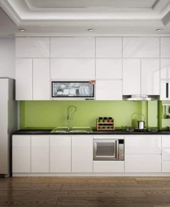 - Tủ bếp nhựa đặc ACRYLIC sáng bóng như gương, dễ kết hợp với đồ nội thất khác trong gia đình.