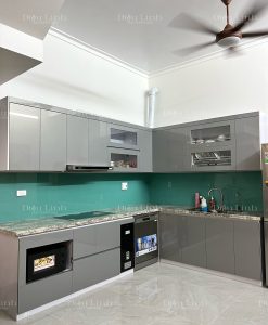 Tủ bếp Acrylic màu AC18 (ghi nhạt ánh kim) thi công và lắp đặt tại Ninh Nhất Ninh Bình.