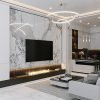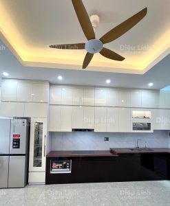 Tủ bếp xây bục bê tông cánh phủ Acrylic bóng gương.