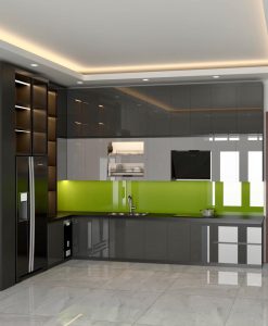 Tủ bếp kết hợp 2 tông màu ghi _ xám nhựa đặc cánh phủ Acrylic.