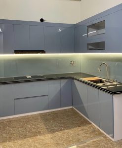 TBA160-Tủ bếp nhựa đặc cánh phủ Acrylic tủ bếp chữ L thi công tại Ninh Bình.