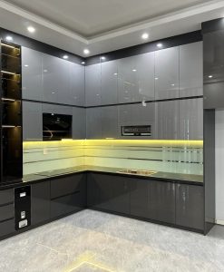 Mẫu tủ bếp kịch trần nhựa đặc cánh phủ Acrylic thi công và lắp đặt tại Ninh Bình.