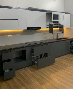 Tủ bếp chữ i nhựa đặc cánh phủ Acrylic thi công tại Ninh Bình.