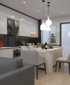 Tủ bếp kịch trần màu trắng thi công tại Ninh Bình.