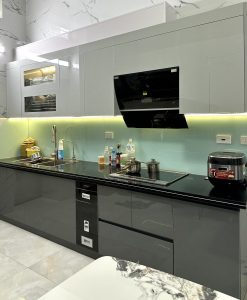 Tủ bếp nhựa Picomat cánh Acrylic bóng gương lắp đặt tại Ninh Bình.