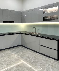 Tủ bếp khung vinco cánh Acrylic bóng gương-màu thịnh hành năm 2024.