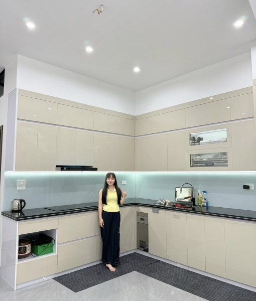 Thi công trọn bộ tủ bếp Acrylic nhà tuyển thủ bóng chuyền tại Nam Thành/Hoa Lư/Ninh Bình.