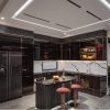 _ Tủ bếp cánh kính chữ L, tủ bếp trên màu trắng, tủ bếp dưới màu đen
