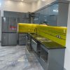 - Vật liệu thi công: Tủ bếp inox cánh kính