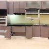 - Vật liệu thi công: Tủ bếp inox cánh kính