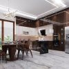 _ Cánh tủ bếp sử dụng kính cường lực dày 5mm cho khả năng chống va đập, chống xước, chịu nhiệt và không giãn nở.