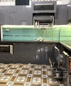 - Có tính thẩm mỹ đem lại sự sang trọng cho căn bếp. Kính cường lực có khả năng chống trầy xước nên tủ sẽ luôn luôn giữ vẻ ngoài như mới.