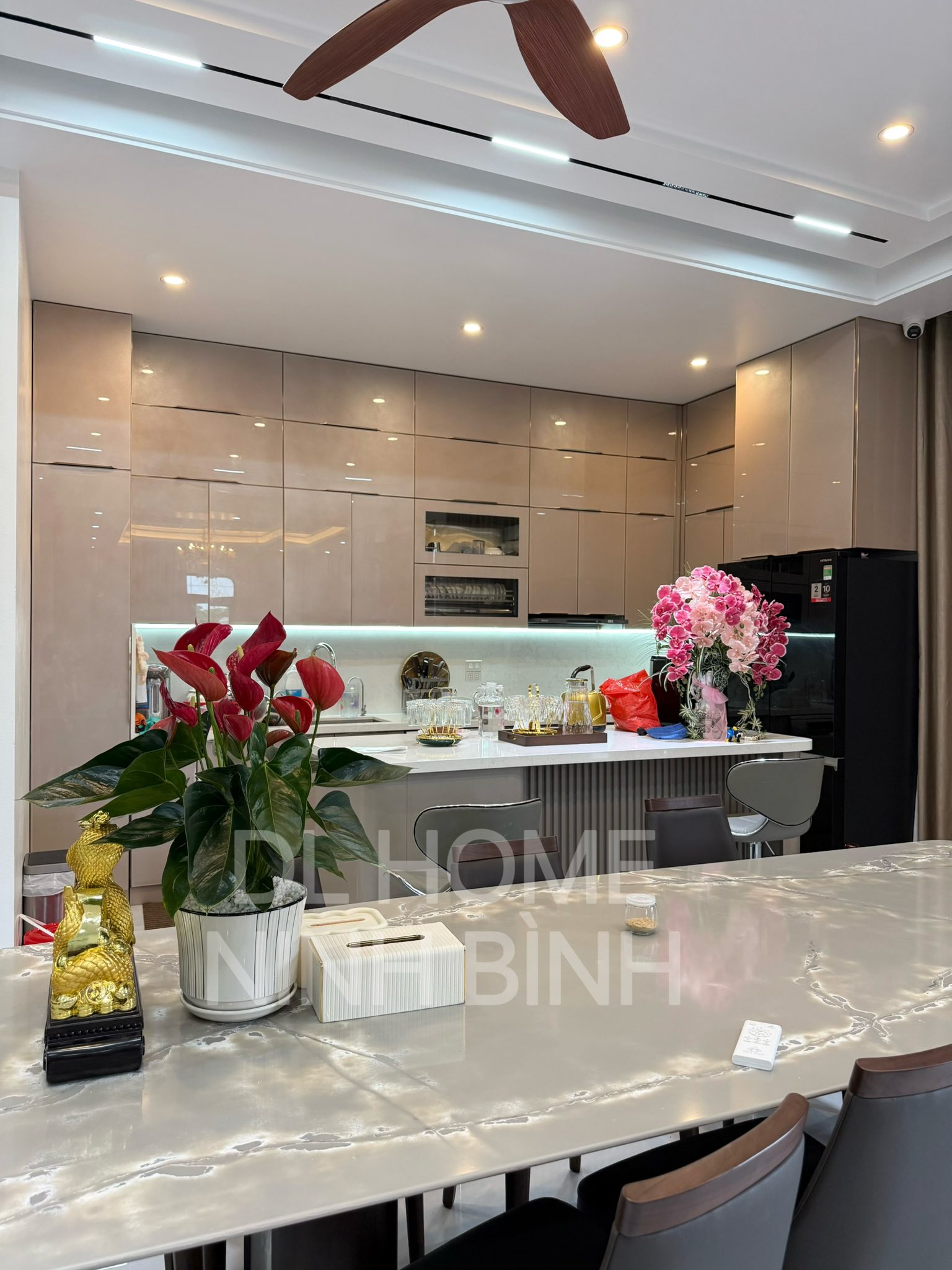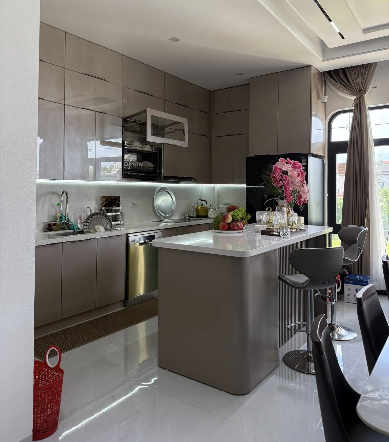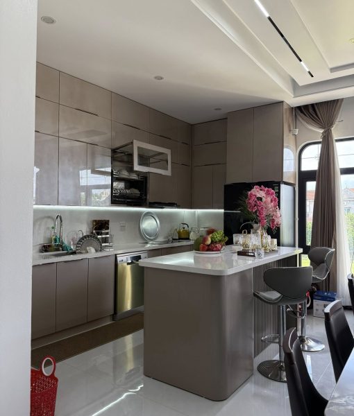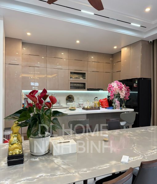 TBK095_Thi Công Tủ Bếp tủ bếp cánh kính khung inox 3 lớp hệ bắt vít modum  Tại Ninh Bình – Sang Trọng, Bền Đẹp Và Hiện Đại