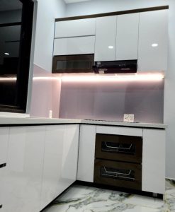 Tủ bếp chữ L nhà chú hùng nhựa cao cấp Vincoplast.