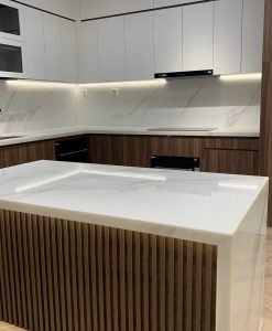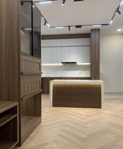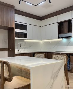 TBV121-Tủ bếp vân gỗ VC28 nhựa cao cấp Vincoplast thi công tại Ninh Bình.