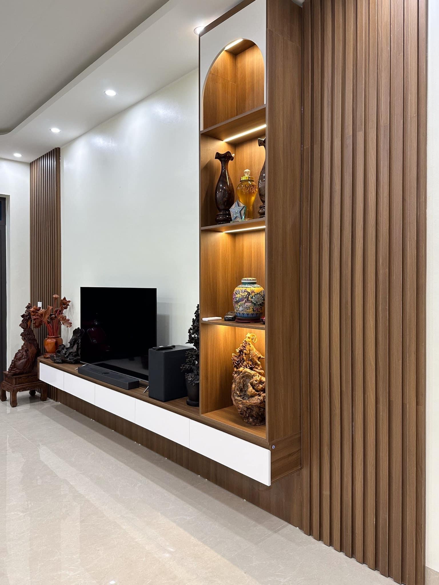 TV0025-Kệ trang trí lam sóng phòng khách Anh Tuấn/ Gia Viễn/ Ninh Bình gỗ MDF lõi xanh chống ẩm Bền Đẹp Tại Ninh Bình.